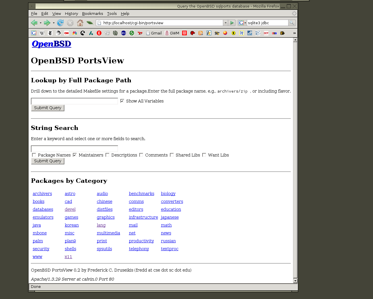 Portsview is a Ruby CGI script to query the OpenBSD sqlports database.